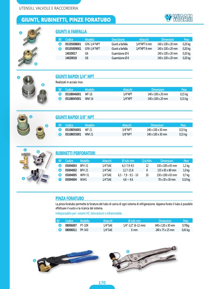 La pinza foratubo permette la foratura del tubo di carica di ogni sistema di refrigerazione. Appena forato il tubo è possibile