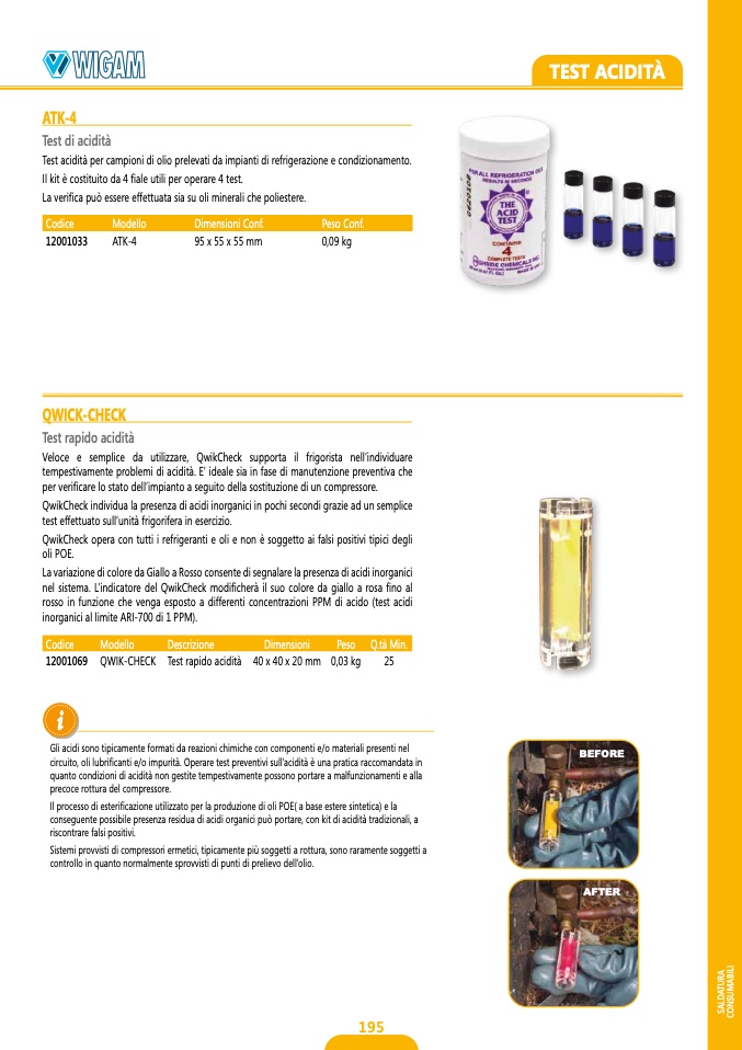 à per campioni di olio prelevati da impianti di refrigerazione e condizionamento.