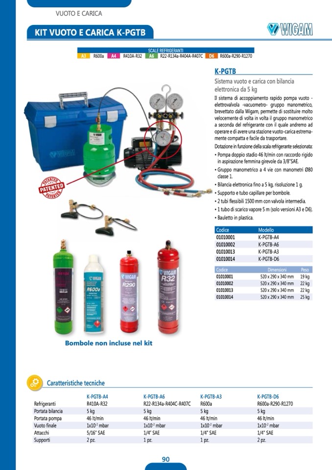Dotazione in funzione della scala refrigerante selezionata: