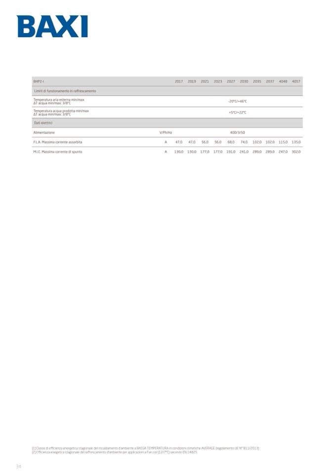 (1) Classe di efficienza energetica stagionale del riscaldamento d’ambiente a BASSA TEMPERATURA in condizioni climatiche AVERAGE (regolamento UE N° 811/2013)