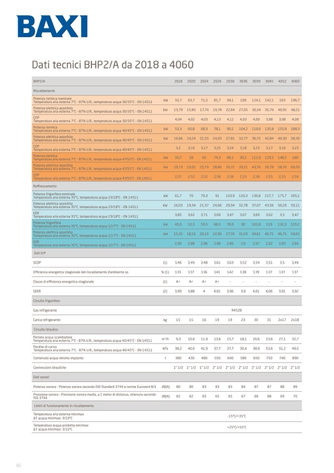 Temperatura aria esterna 7°C – 87% U.R., temperatura acqua 40/45°C - EN 14511
