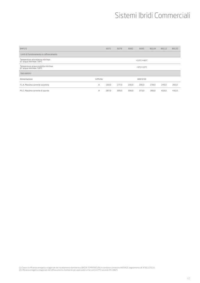 (2) Efficienza enegetica stagionale del raffrescamento d'ambiente per applicazioni a Fan coil (12/7°C) secondo EN 14825