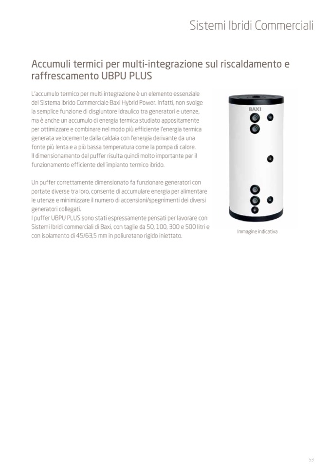 Sistemi Ibridi commerciali di Baxi, con taglie da 50, 100, 300 e 500 litri e