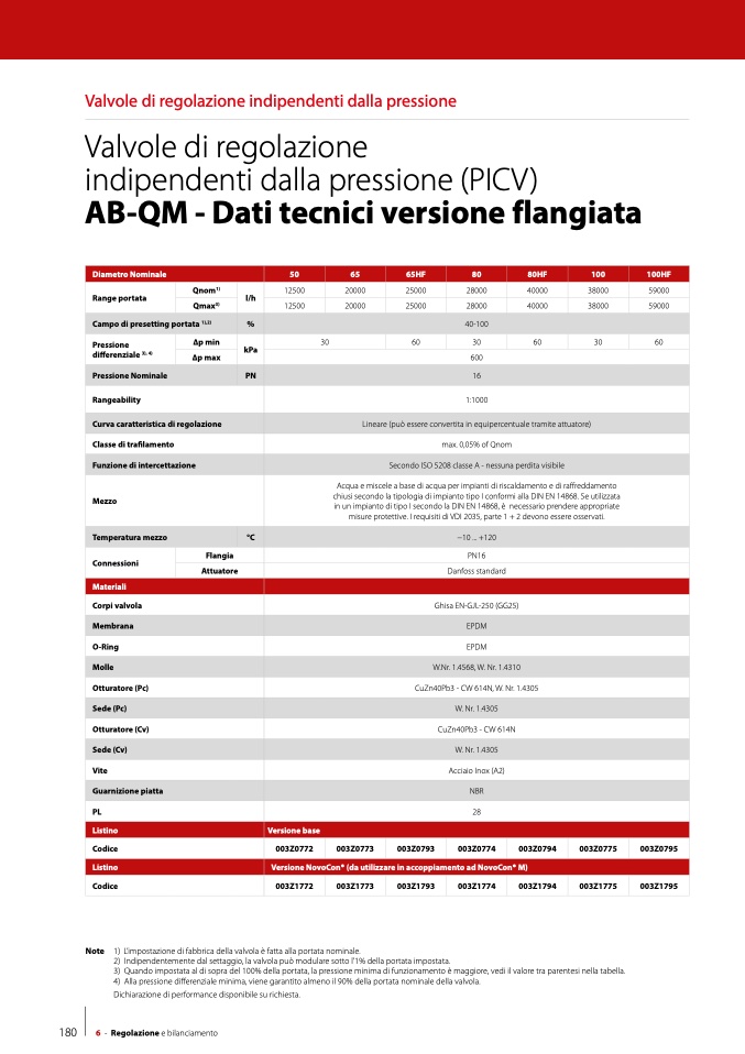 Note 1) L’impostazione di fabbrica della valvola è fatta alla portata nominale.