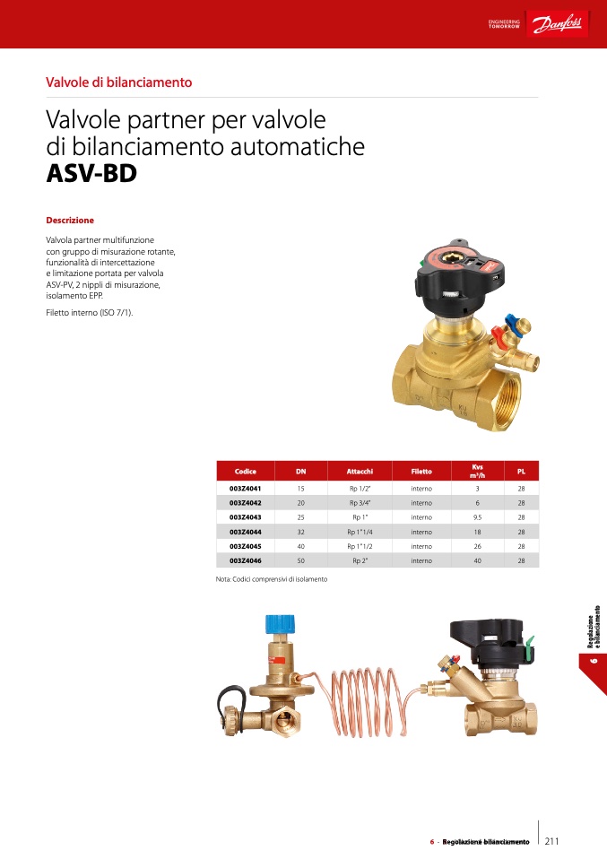 Nota: Codici comprensivi di isolamento