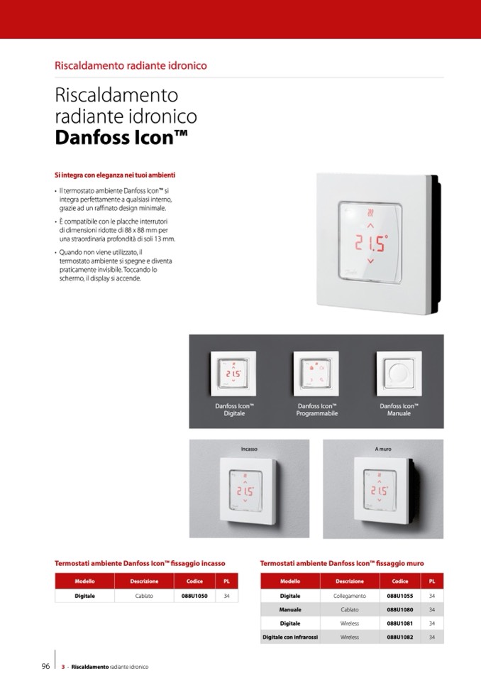 Termostati ambiente Danfoss IconTM fissaggio muro