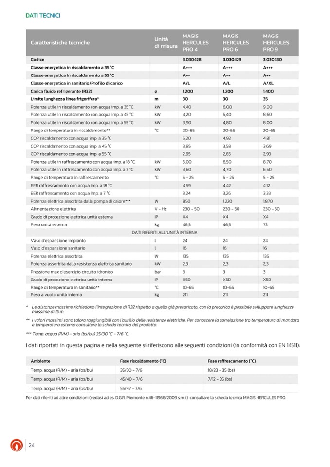 Per dati riferiti ad altre condizioni (vedasi ad es. D.G.R. Piemonte n.46-11968/2009 s.m.i.) consultare la scheda tecnica MAGIS HERCULES PRO.