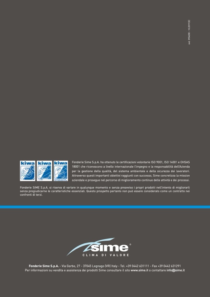 Fonderie Sime S.p.a. - Via Garbo, 27 - 37045 Legnago (VR) Italy - Tel. +39 0442 631111 - Fax +39 0442 631291