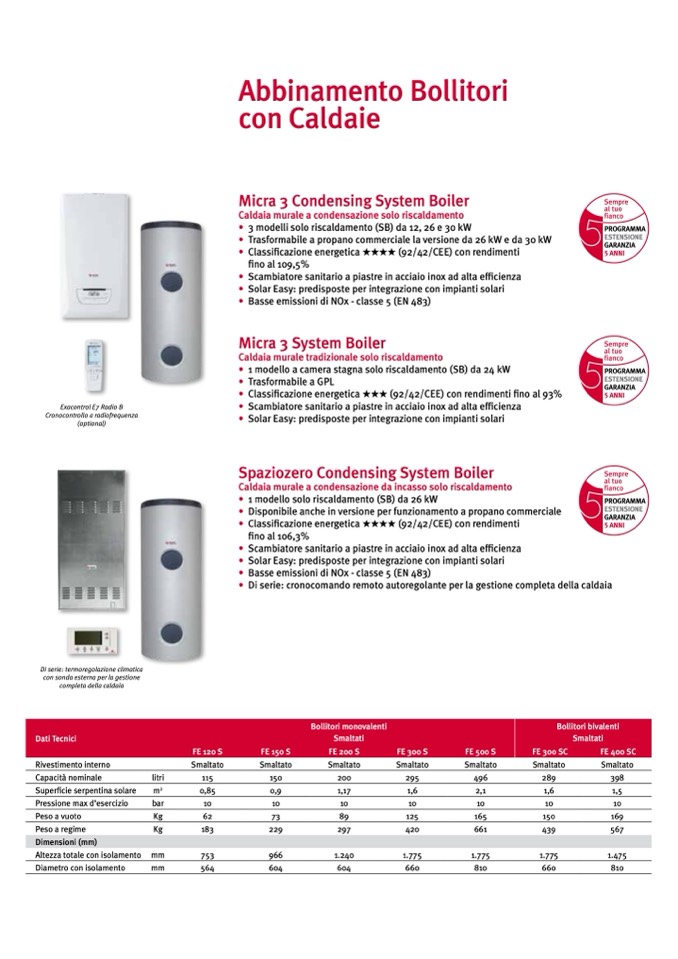 • Classificazione energetica ★★★ (92/42/CEE) con rendimenti fino al 93%