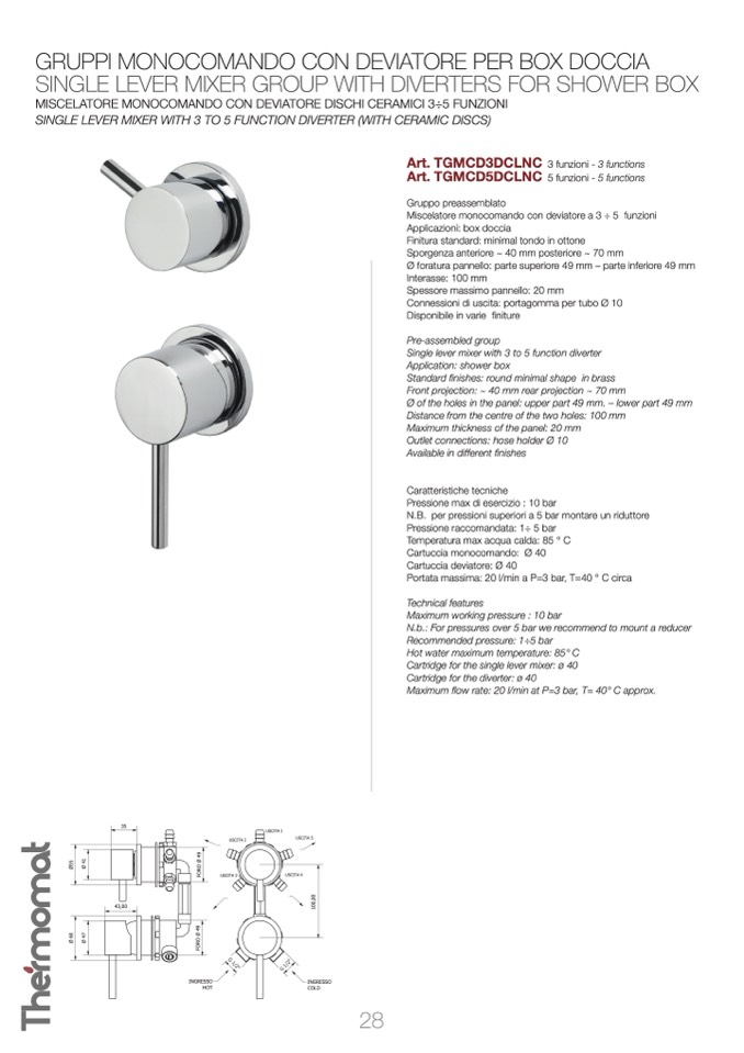 MISCELATORE MONOCOMANDO CON DEVIATORE DISCHI CERAMICI 3÷5 FUNZIONI