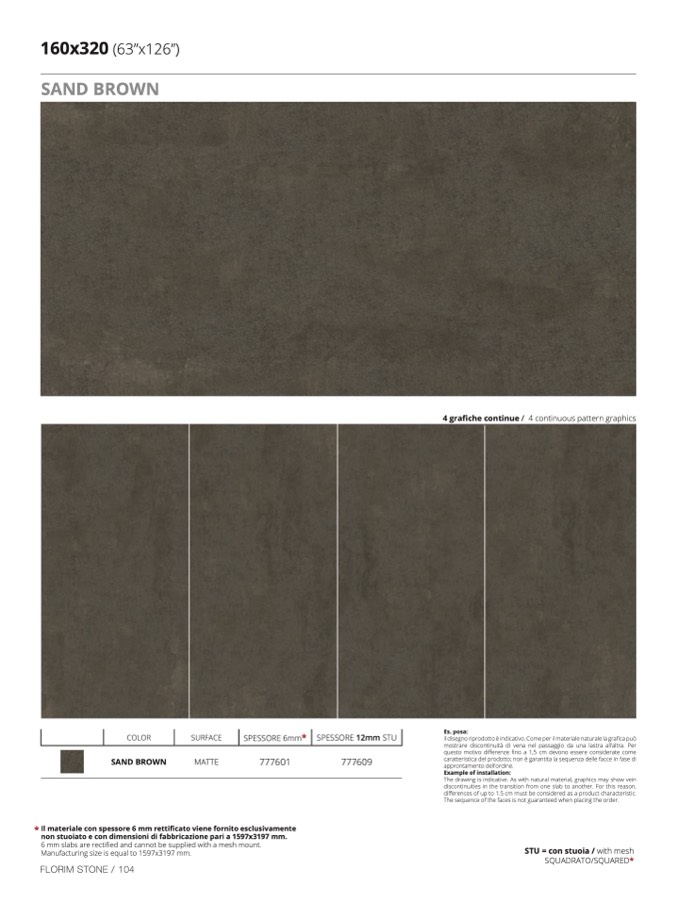 non stuoiato e con dimensioni di fabbricazione pari a 1597x3197 mm