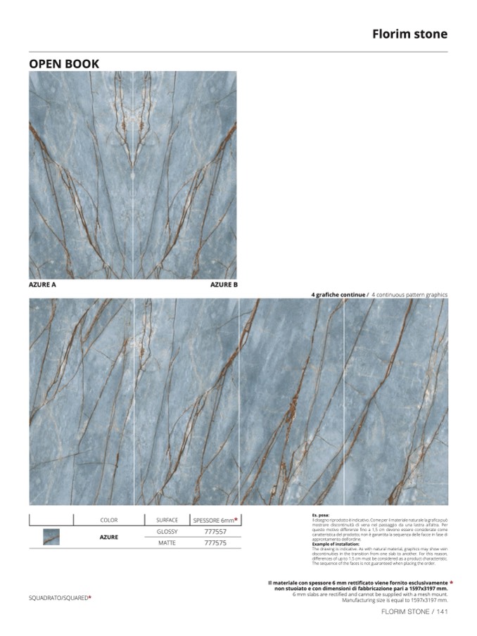 non stuoiato e con dimensioni di fabbricazione pari a 1597x3197 mm