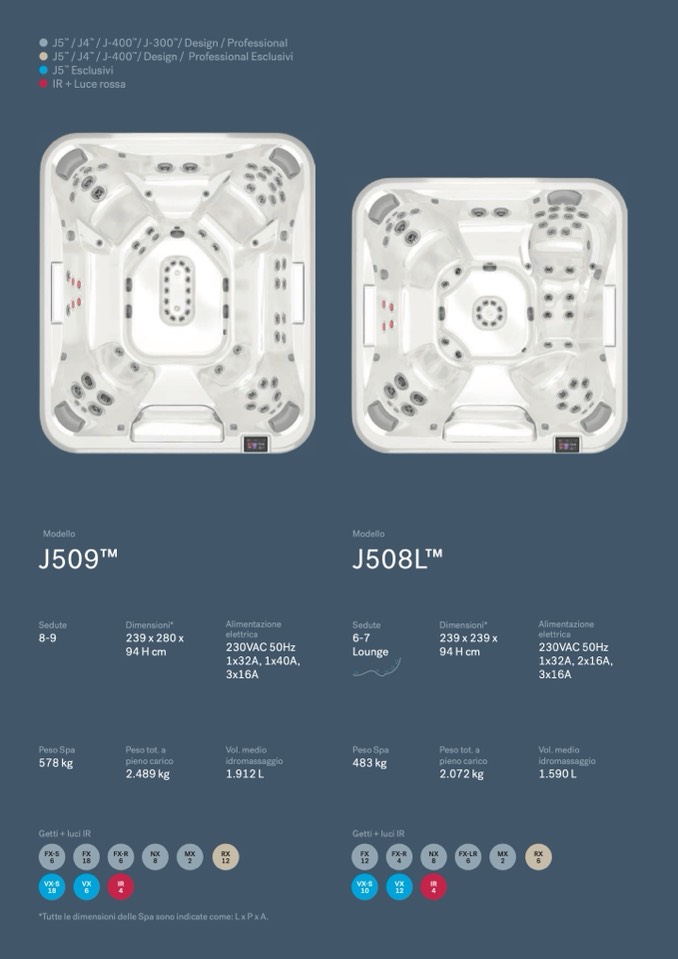 *Tutte le dimensioni delle Spa sono indicate come: L x P x A