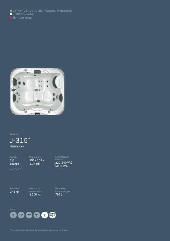 *Tutte le dimensioni delle Spa sono indicate come: L x P x A.
