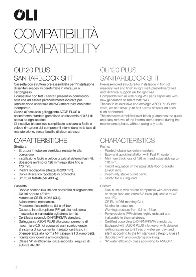 - Classe “A” di efficienza idrica secondo i requisiti di