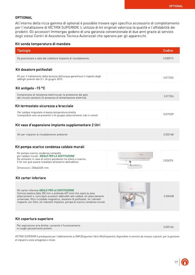 impianto con filtro, kit rubinetti impianto, pompa di scarico condensa murali.