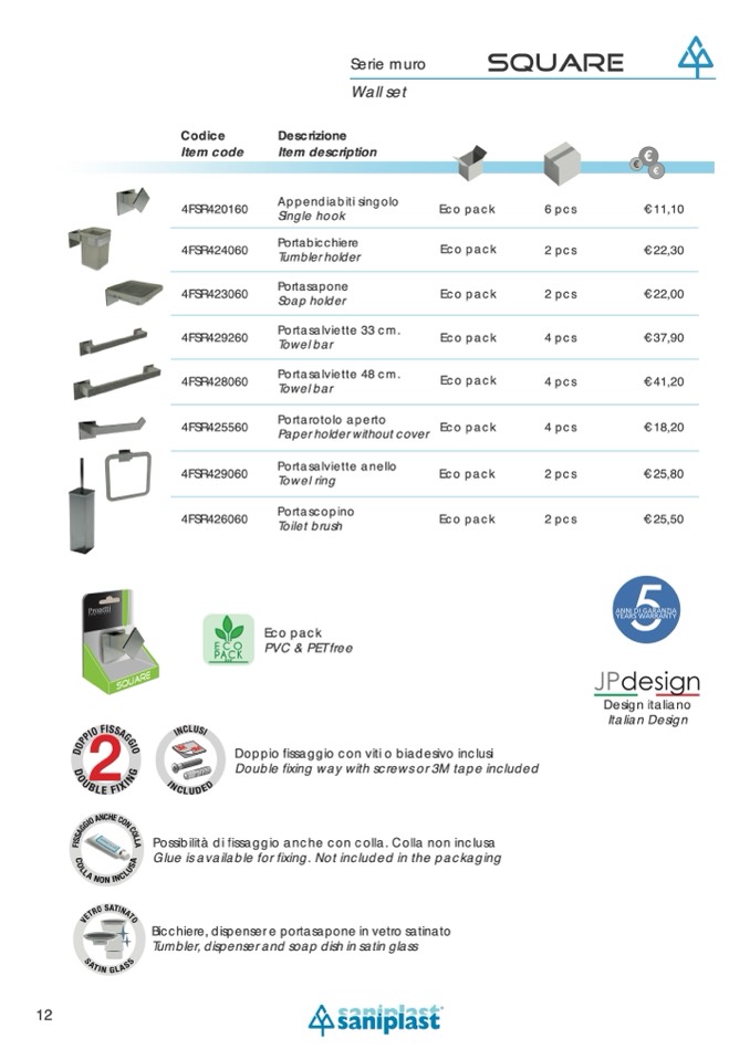Possibilità di fissaggio anche con colla. Colla non inclusa