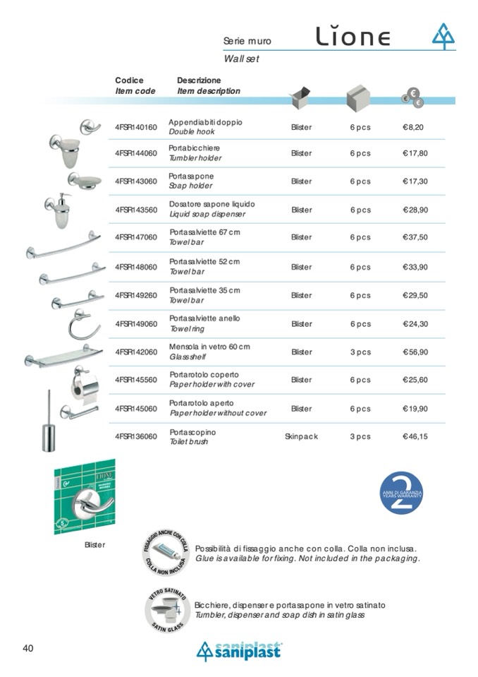 Possibilità di fissaggio anche con colla. Colla non inclusa.