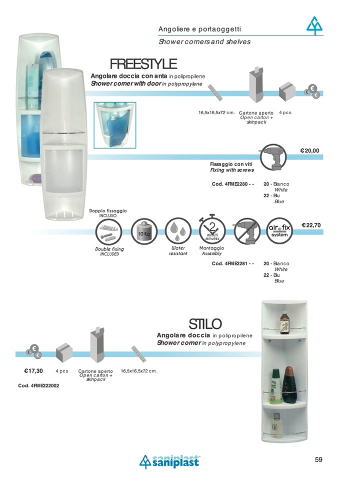 Angolare doccia in polipropilene