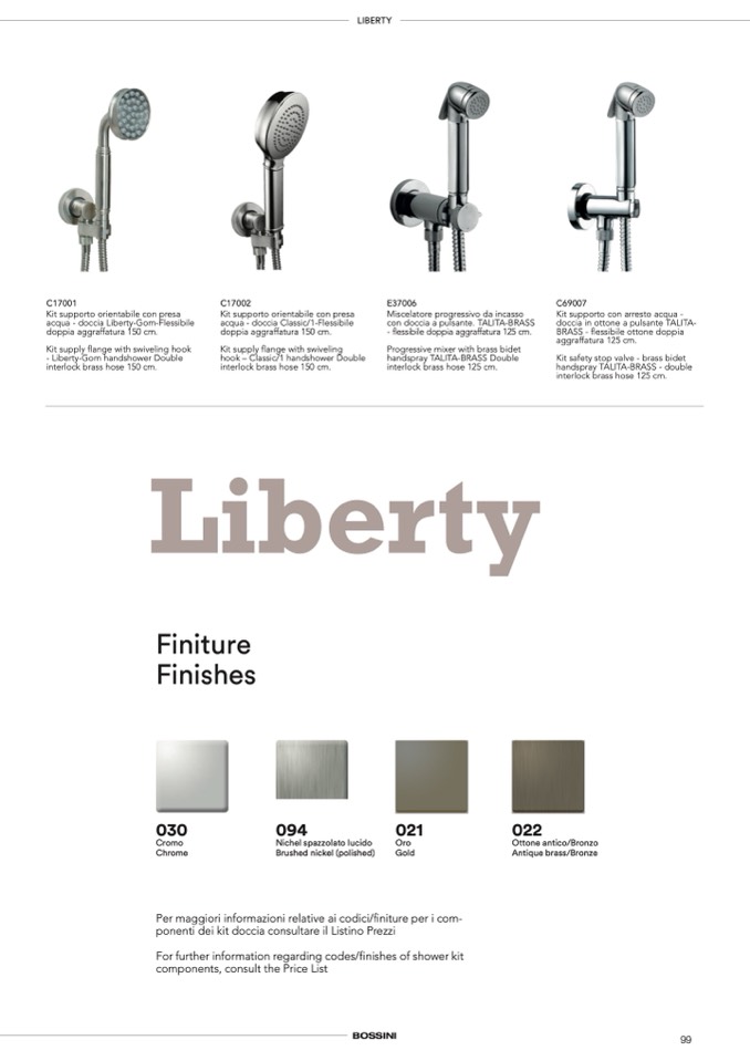 Per maggiori informazioni relative ai codici/finiture per i com-