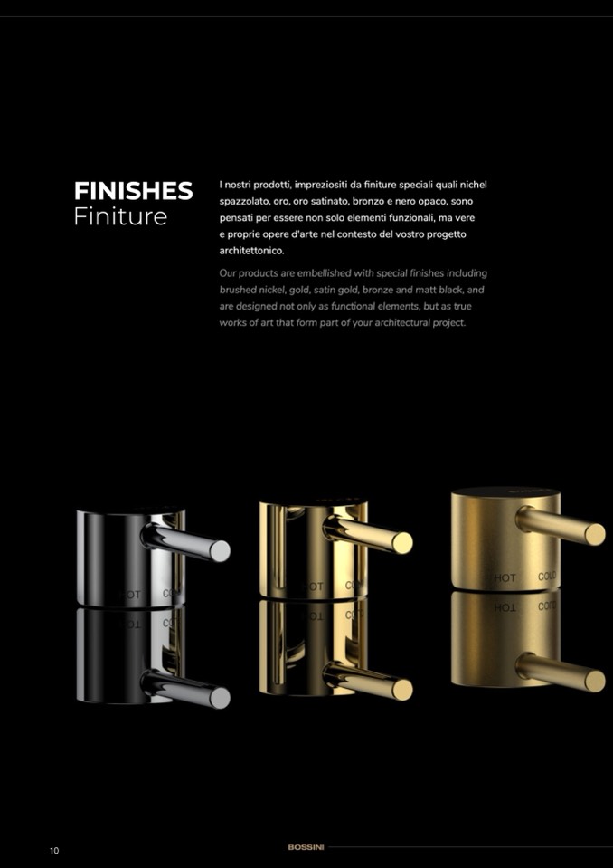 brushed nickel, gold, satin gold, bronze and matt black, and