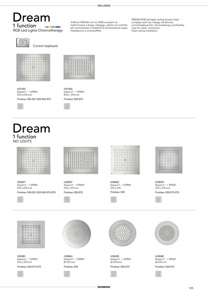 Soffione DREAM con luci RGB completo di