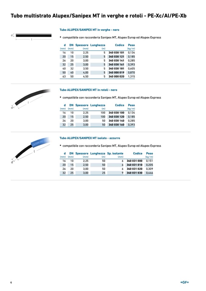 compatibile con raccorderia Sanipex MT, Alupex Europ ed Alupex Express