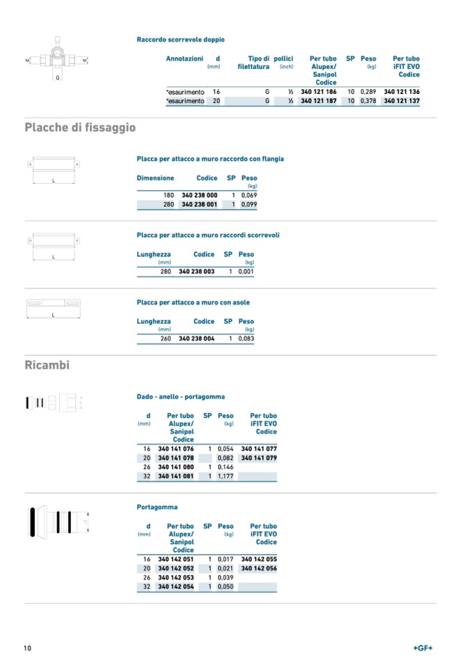 Placca per attacco a muro raccordi scorrevoli