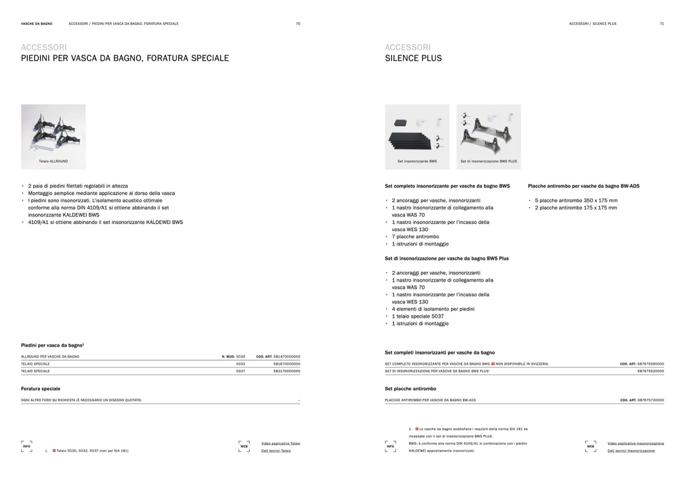 • 4109/A1 si ottiene abbinando il set insonorizzante KALDEWEI BWS