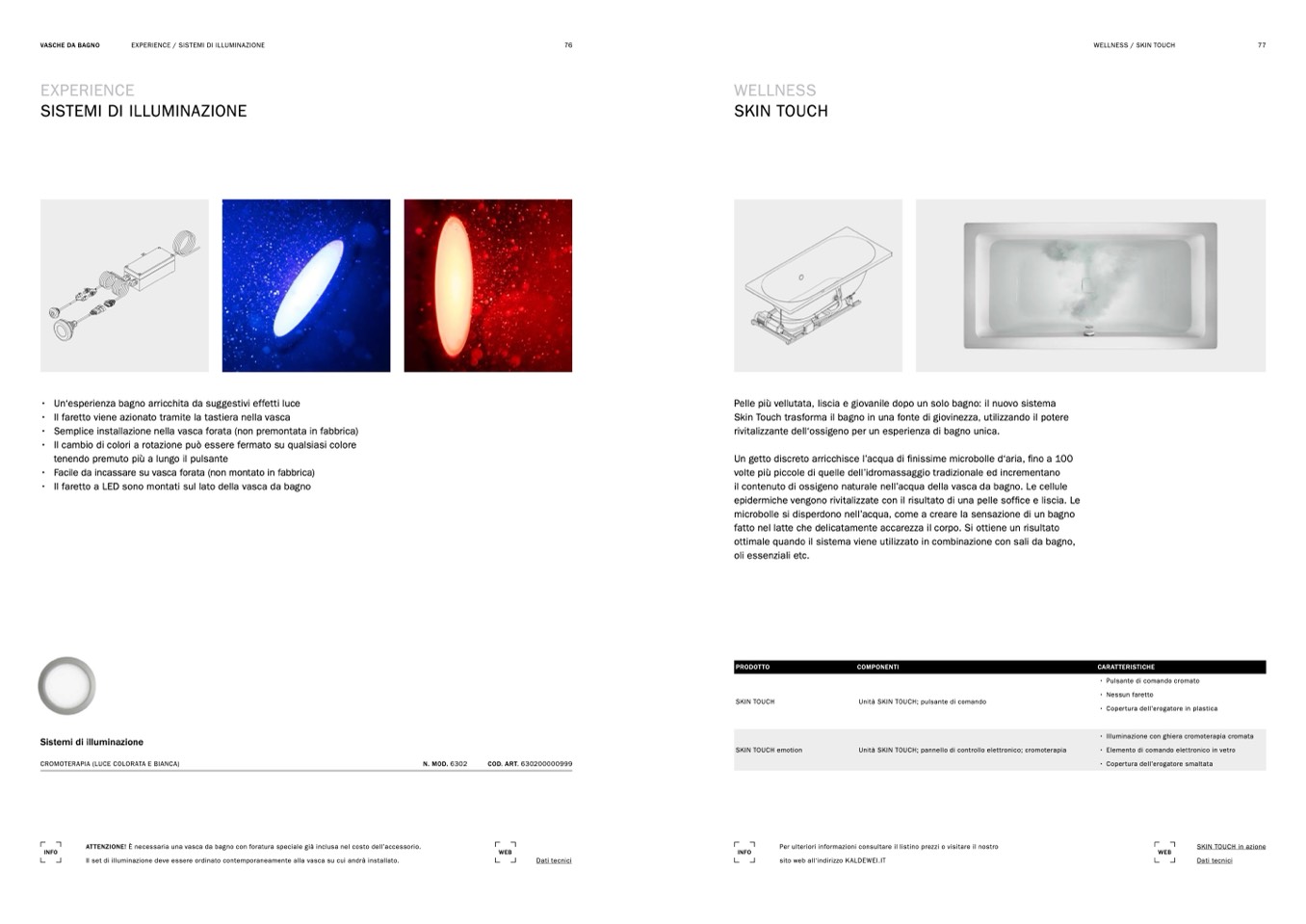 Unità SKIN TOUCH; pannello di controllo elettronico; cromoterapia