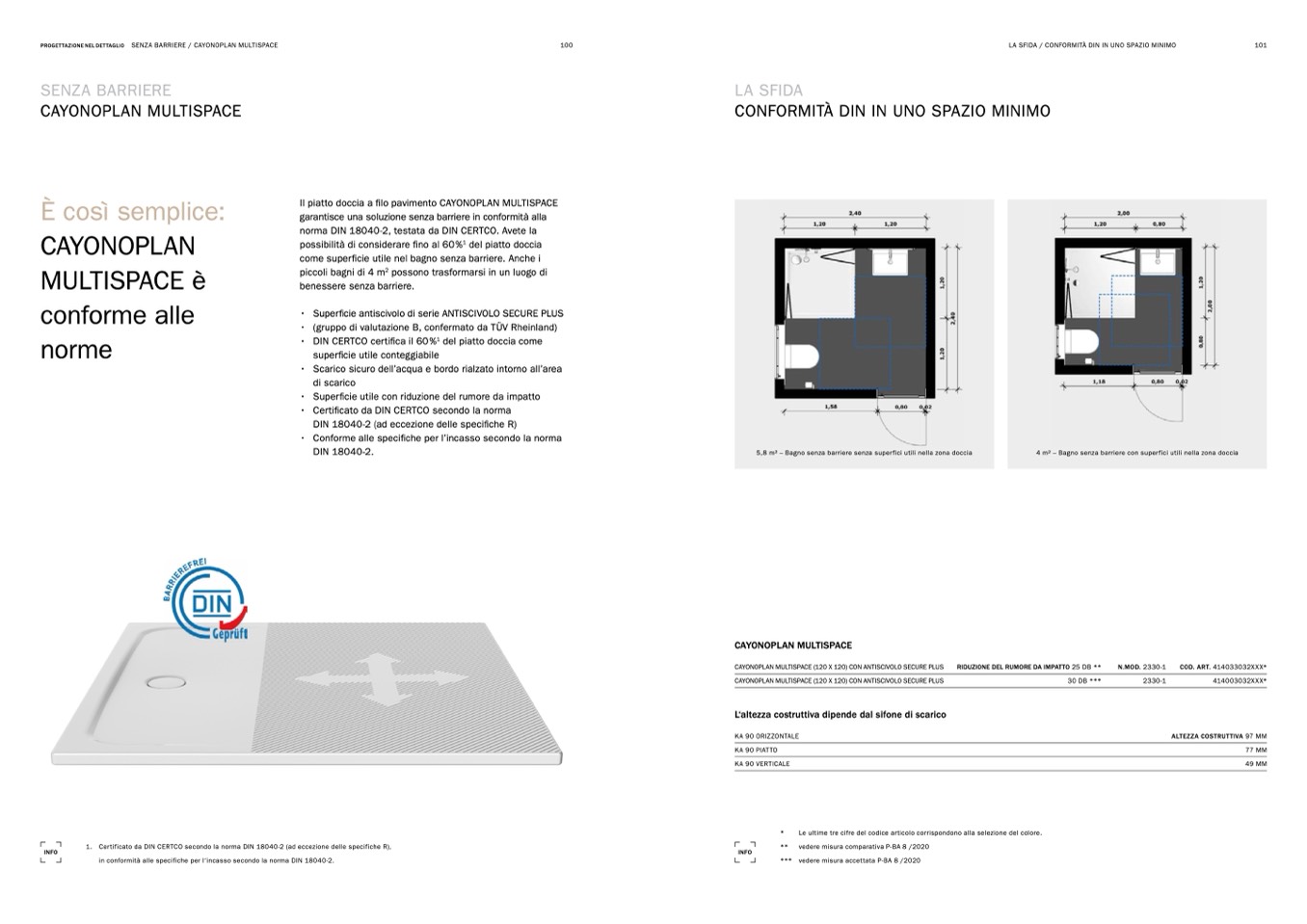 Il piatto doccia a filo pavimento CAYONOPLAN MULTISPACE