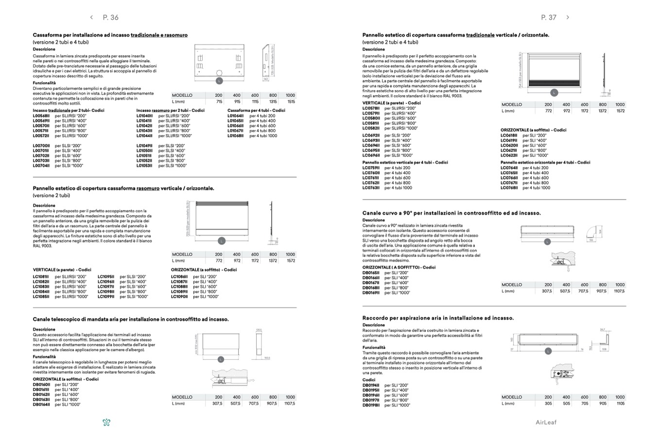 ORIZZONTALE ( A SOFFITTO) - Codici