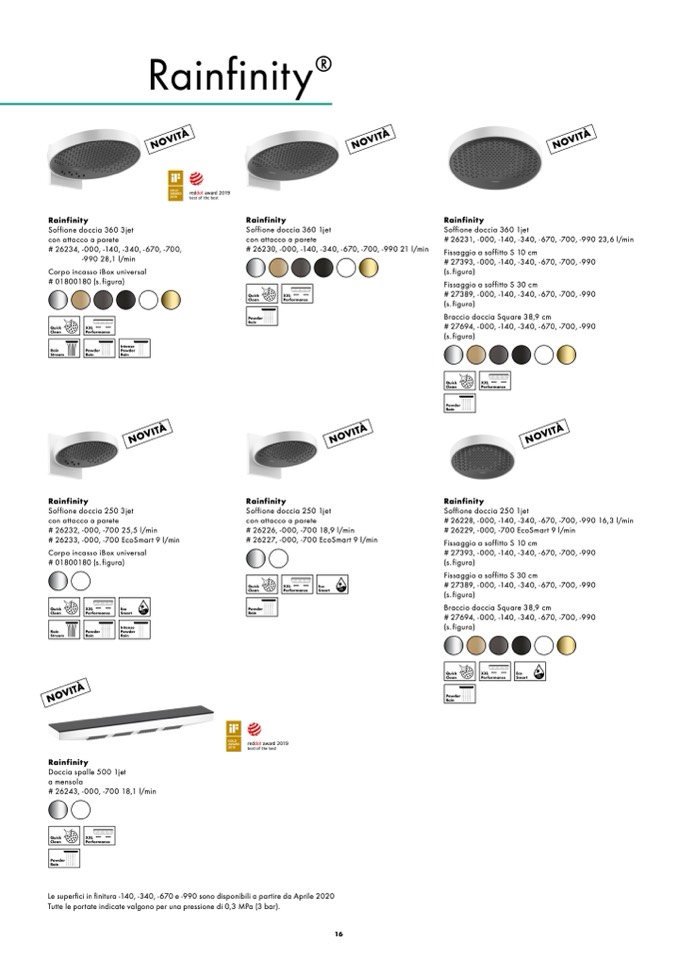 Le superfici in finitura -140, -340, -670 e -990 sono disponibili a partire da Aprile 2020