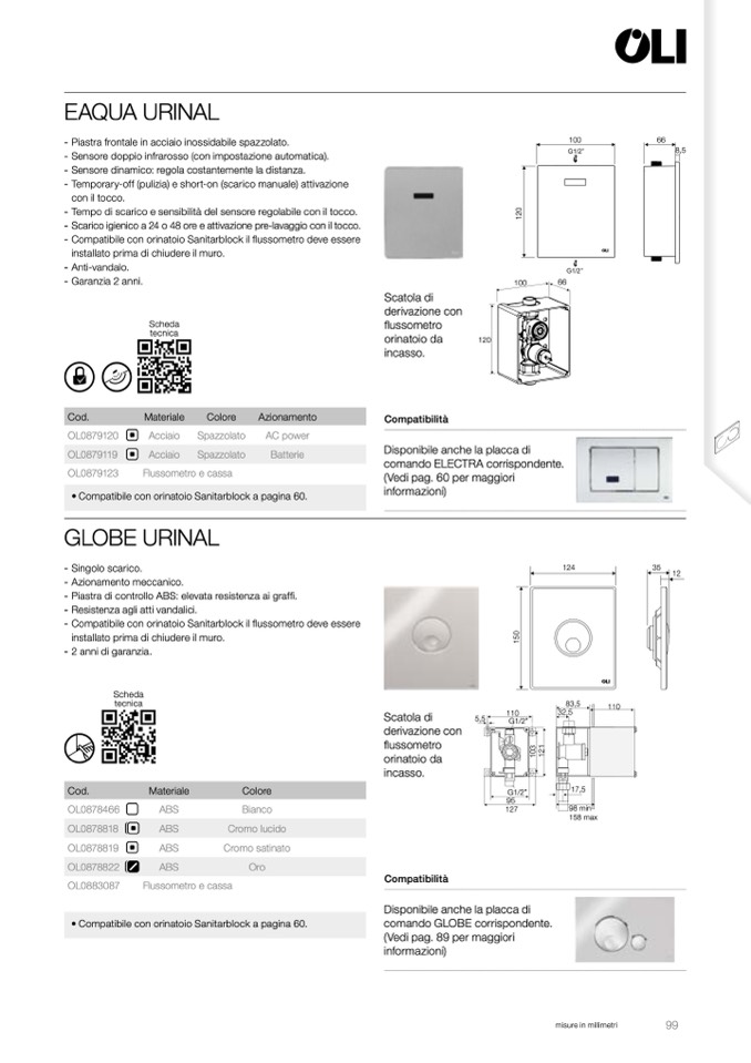 • Compatibile con orinatoio Sanitarblock a pagina 60.