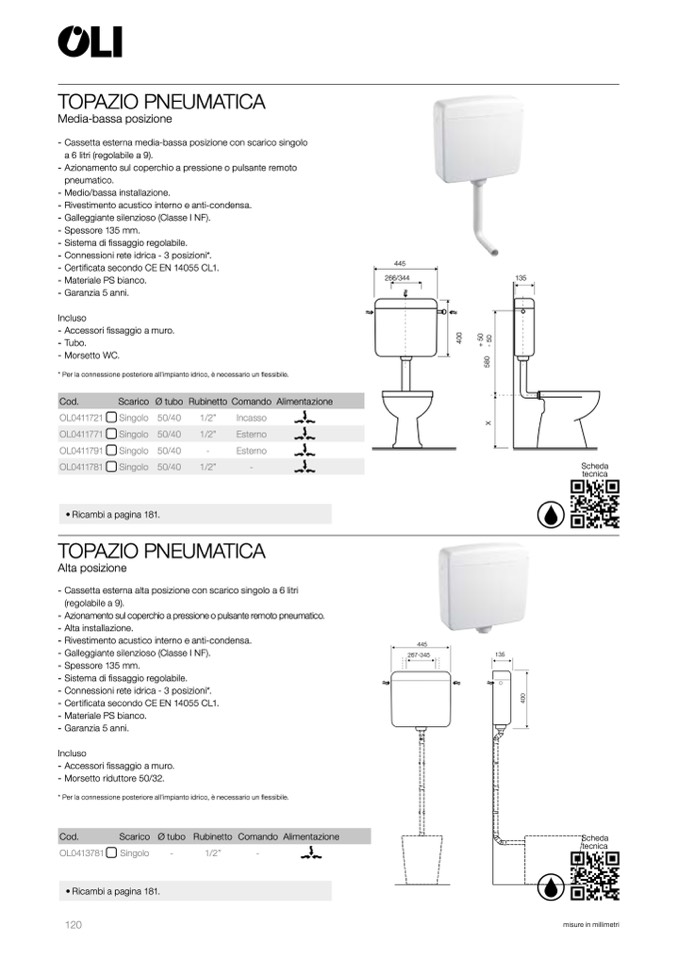 - Cassetta esterna alta posizione con scarico singolo a 6 litri