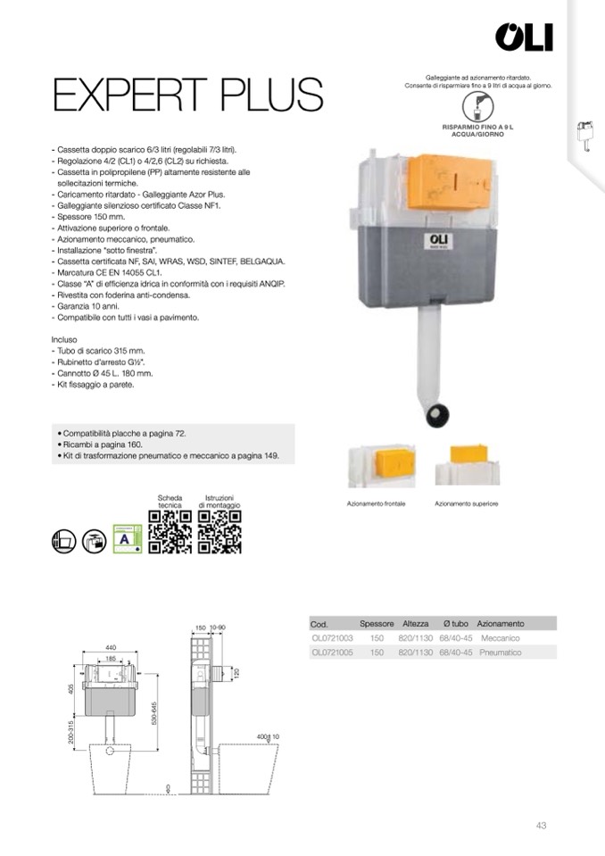 - Cassetta doppio scarico 6/3 litri (regolabili 7/3 litri).