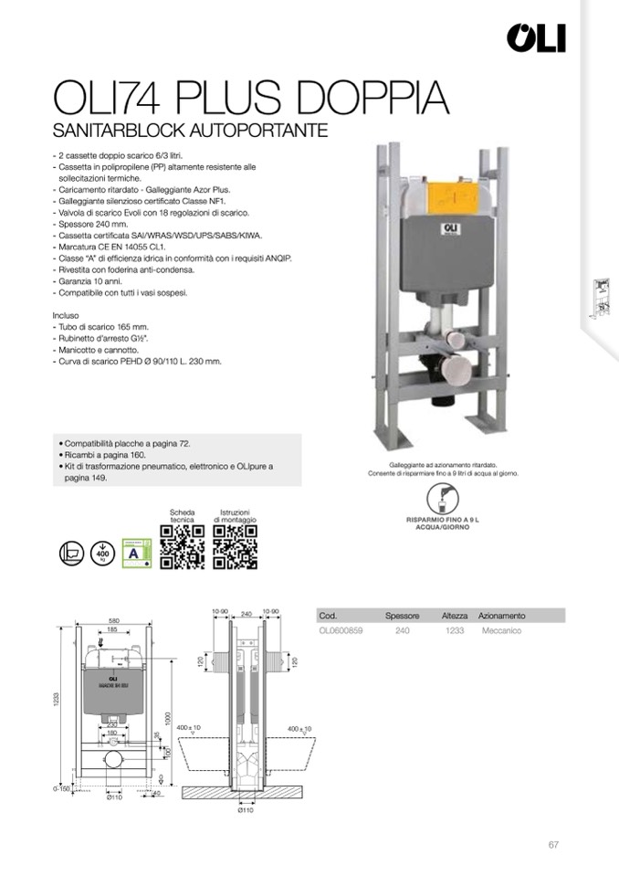 - 2 cassette doppio scarico 6/3 litri.