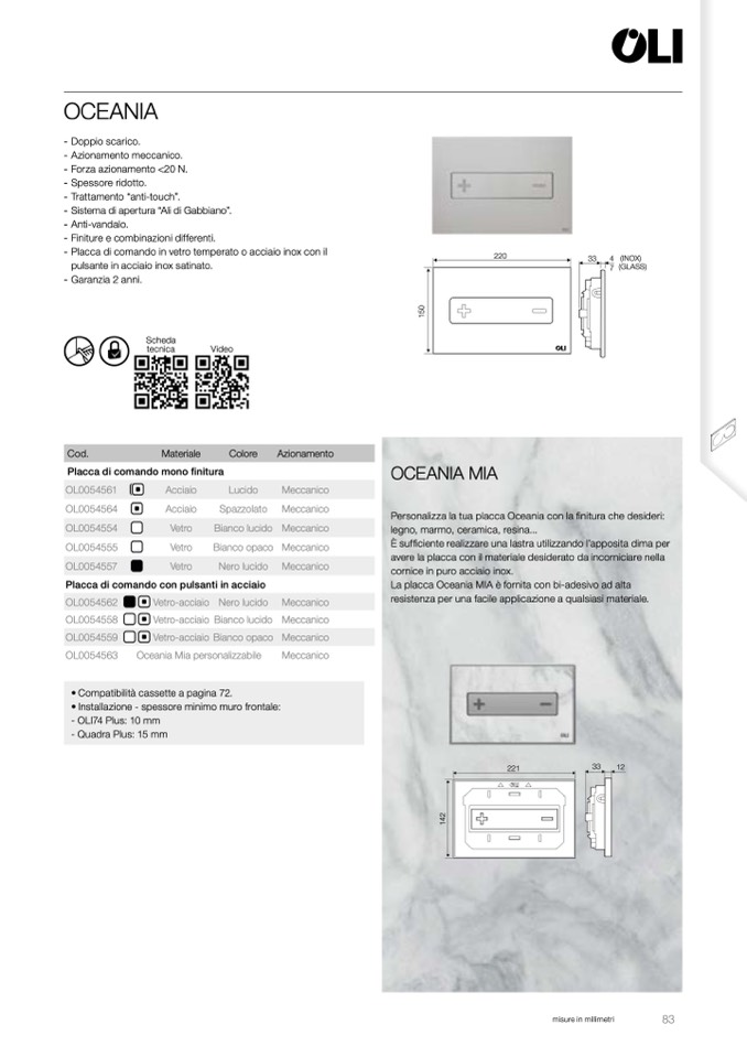 Personalizza la tua placca Oceania con la finitura che desideri: