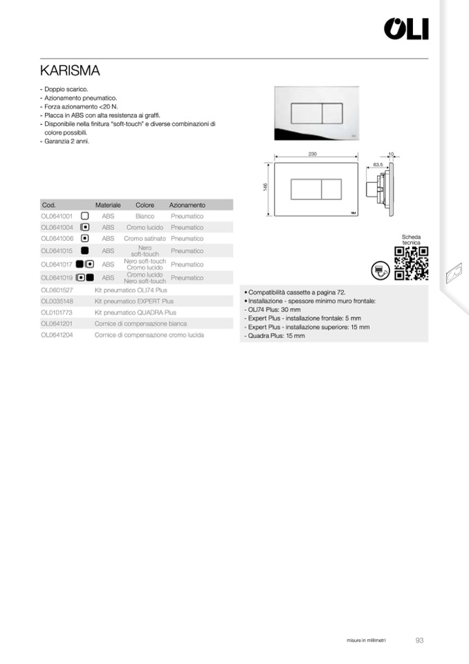- Placca in ABS con alta resistenza ai graffi.