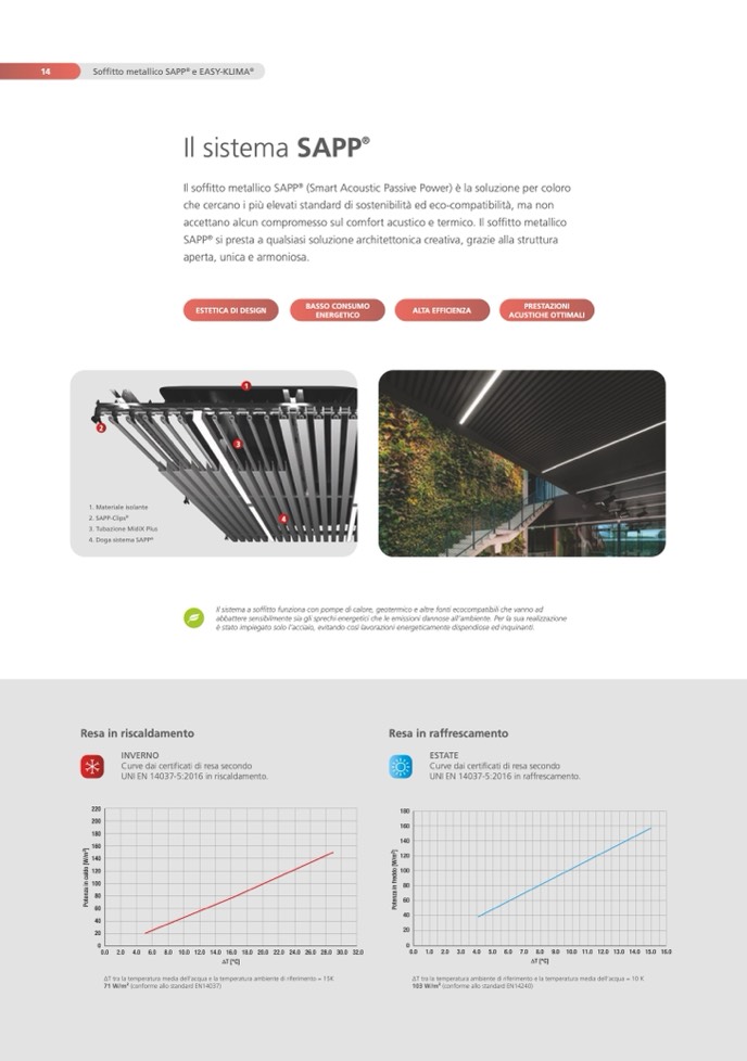 Il sistema a soffitto funziona con pompe di calore, geotermico e altre fonti ecocompatibili che vanno ad