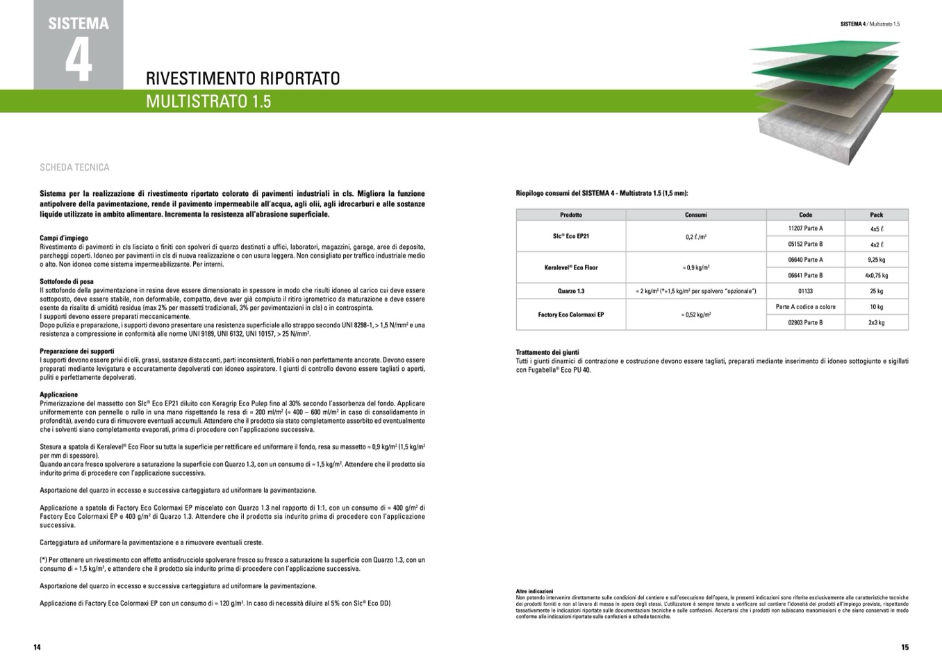 Riepilogo consumi del SISTEMA 4 - Multistrato 1.5 (1,5 mm):