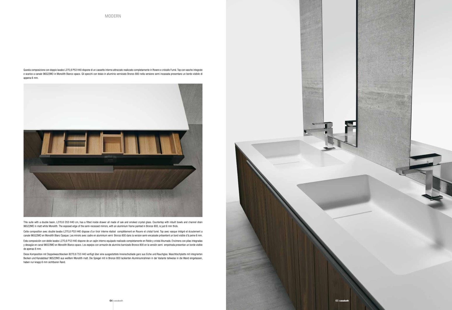e scarico a canale 96522MO in Monolith Bianco opaco. Gli specchi con telaio in alluminio verniciato Bronzo 800 nella versione semi incassata presentano un bordo visibile di