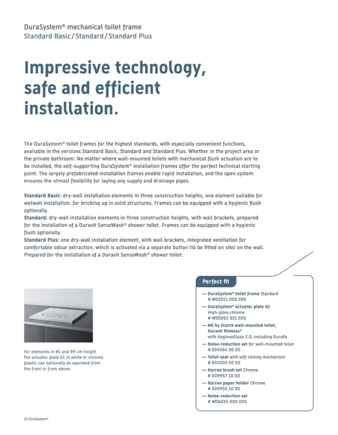 Standard: dry-wall installation elements in three construction heights, with wall brackets, prepared