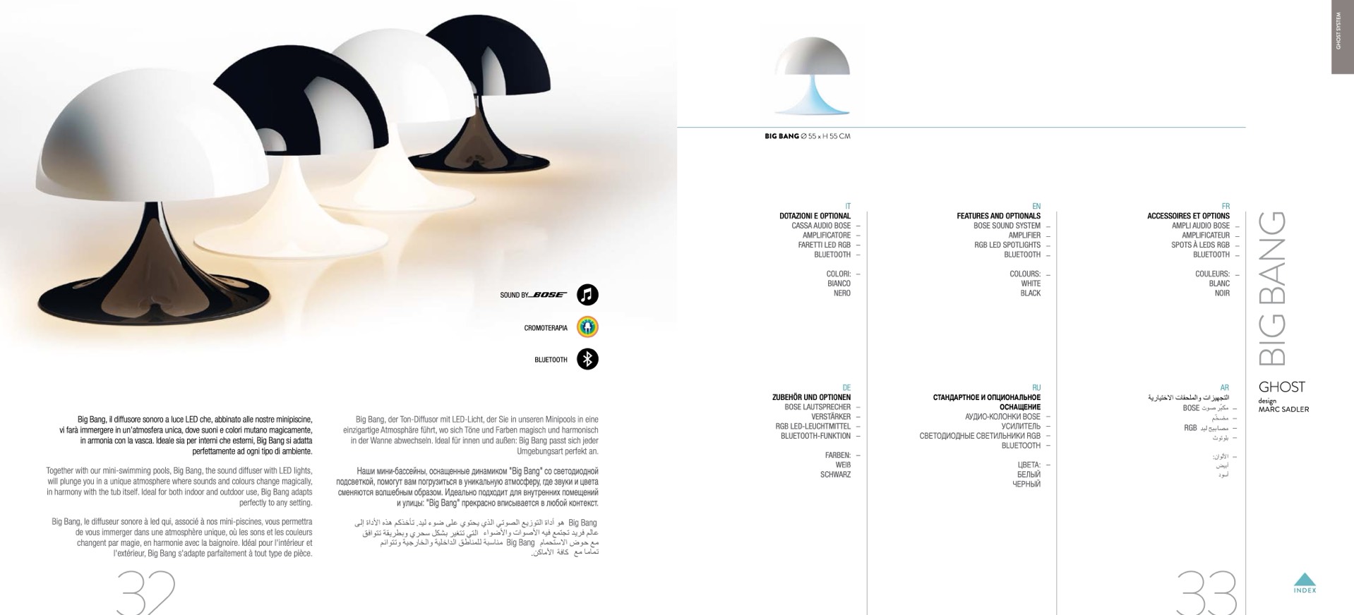 in harmony with the tub itself. Ideal for both indoor and outdoor use, Big Bang adapts