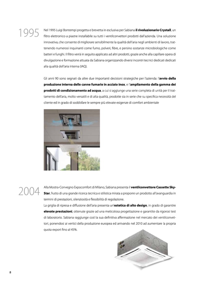 Nel 1995 Luigi Bontempi progetta e brevetta in esclusiva per Sabiana il rivoluzionario Crystall, un