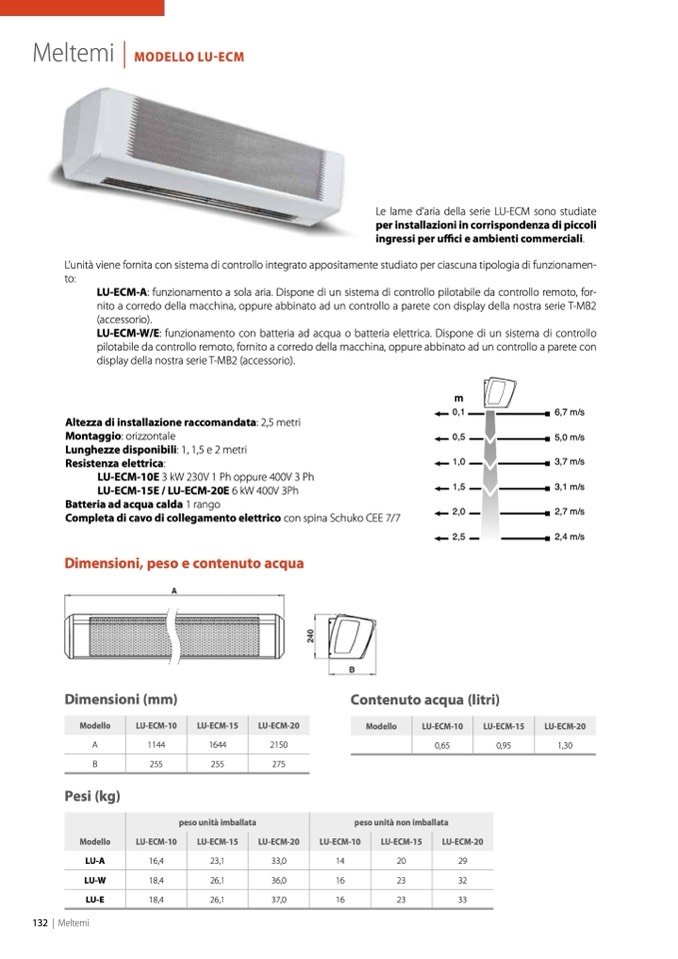 LU-ECM-A: funzionamento a sola aria. Dispone di un sistema di controllo pilotabile da controllo remoto, for-