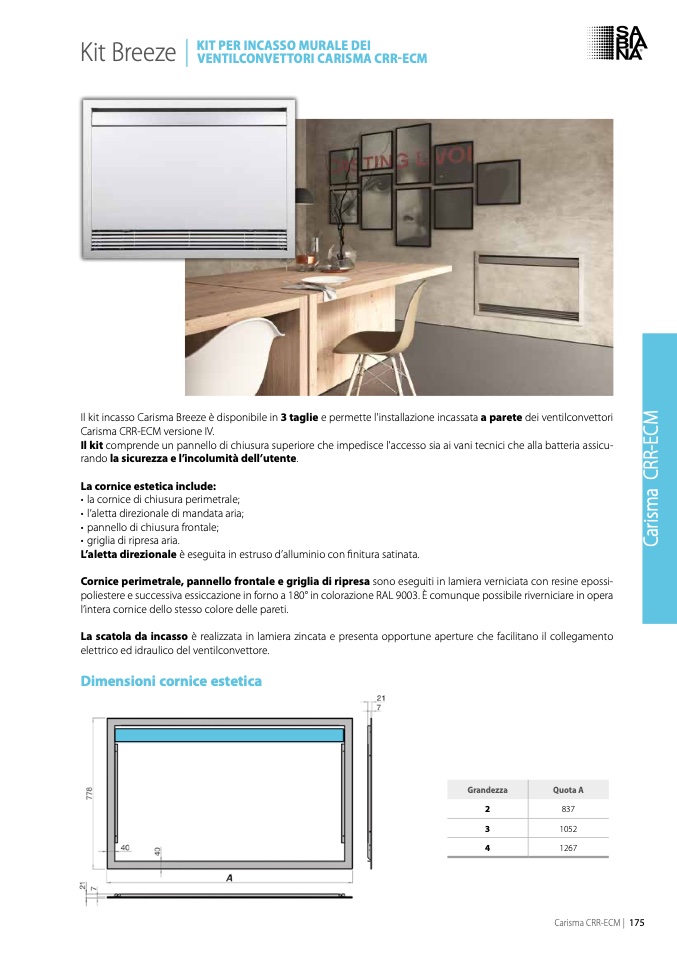 Il kit incasso Carisma Breeze è disponibile in 3 taglie e permette l'installazione incassata a parete dei ventilconvettori