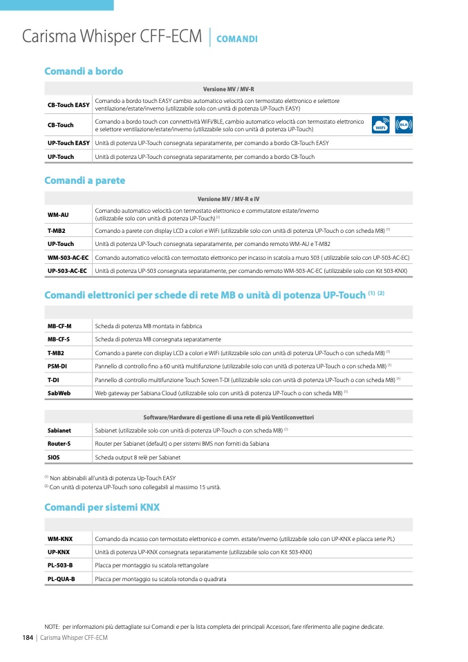 ù dettagliate sui Comandi e per la lista completa dei principali Accessori, fare riferimento alle pagine dedicate.