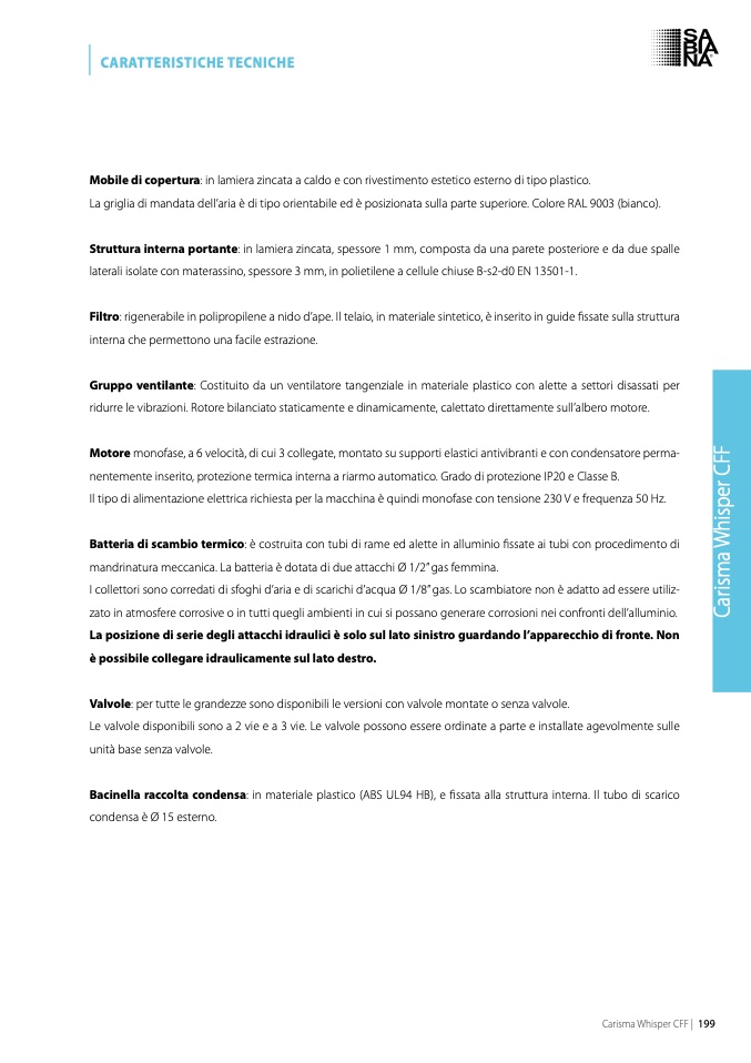 La griglia di mandata dell’aria è di tipo orientabile ed è posizionata sulla parte superiore. Colore RAL 9003 (bianco).