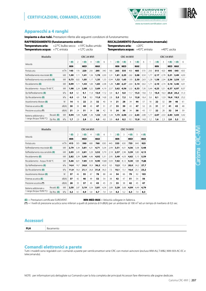Tutti i modelli sono regolabili con i comandi a parete per ventilconvettori serie CRC con motori asincroni (escluso WM-AU, T-MB2, WM-503-AC-EC e